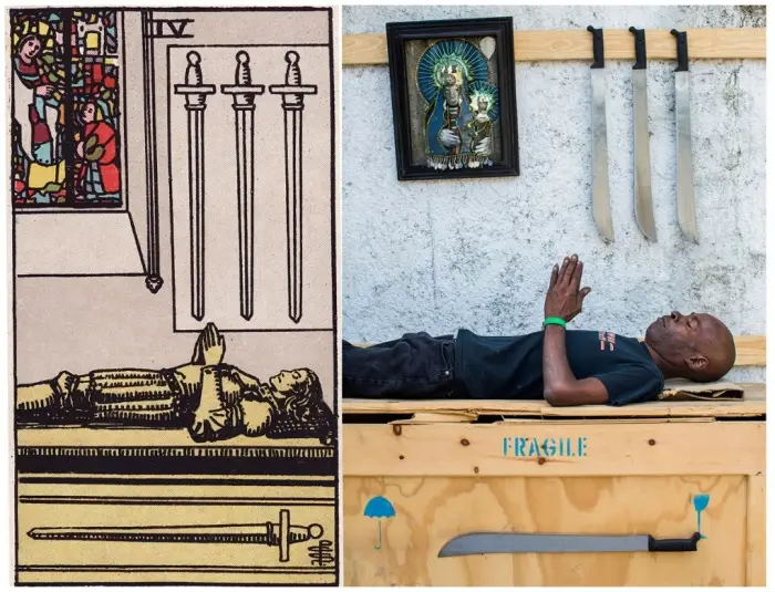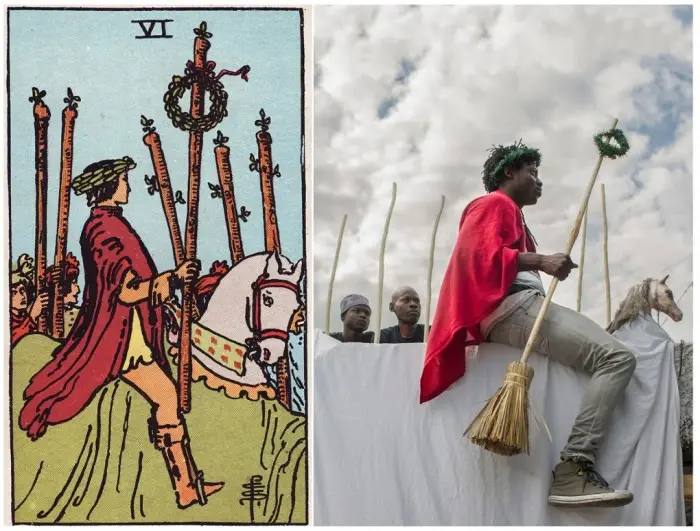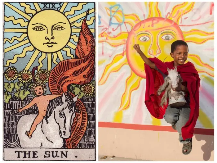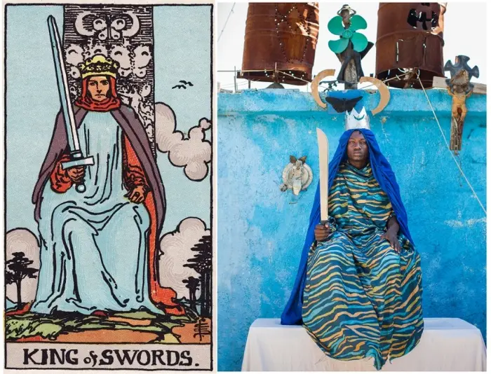 Based on an original tarot deck designed by artist Pamela Colman Smith in 1909, Belgian photographer Alice Smeets has produced her humorous and beautiful take on the spiritual cards by recreating each one in the ghetto slums of Haiti. Having worked and lived in Haiti for a number of years, Alice wanted to represent the Haitian culture and society without photographing the obvious states of poverty around the countries capital of Port-au-Prince. All the photos were created with the help of a group of Haitian artists known as Atis Rezistans (resident artists) and only using materials and sets they had on offer within the ghetto.