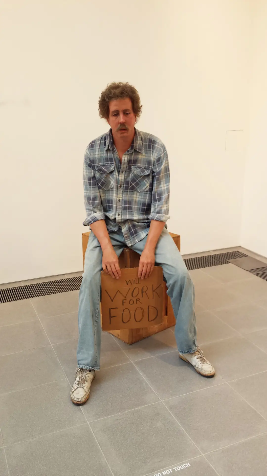 Made up of fibre-glass and plaster the life like sculptures also carry with them a prominent theme successfully portrayed through the clothes they wear and the settings they’re placed in. As you enter the gallery you are greeted by an elderly woman sitting down at her ‘yard sale’ selling books and old framed paintings, the collection also includes a group of workmen placed on scaffolding, a middle aged African woman with her cleaning gear and bin trolley, a homeless man complete with cardboard sign and other controversial and hard hitting pieces. Duane uses his gift to show working class America at the time and the stereotypes that come with each individual. Duane’s real talent comes from his ability to transform the mundane and overlooked ordinary into works of art capable of creating unordinary emotion.