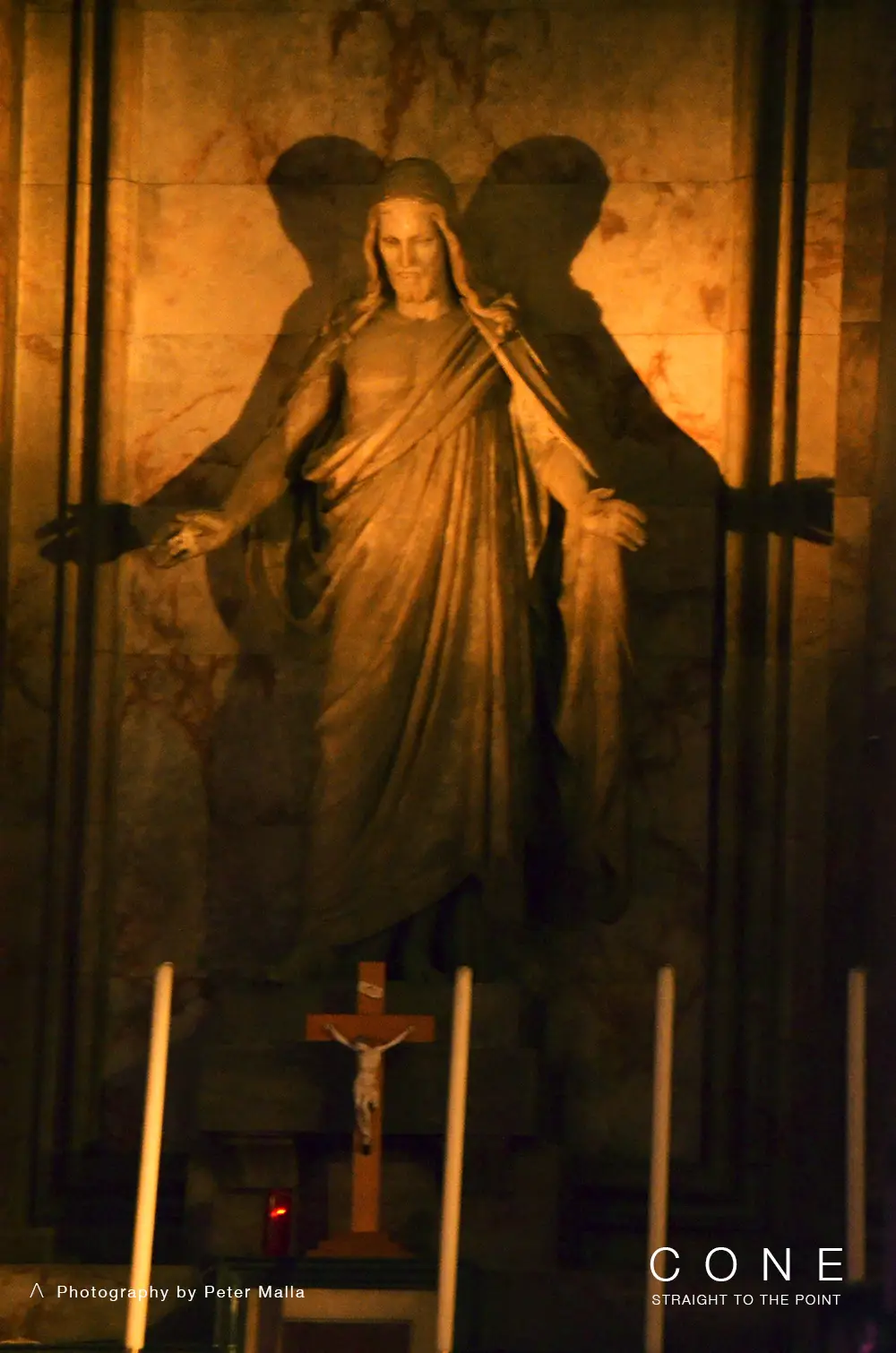Inside, the ambiance was simultaneously warming and haunting. The church’s high walls and religious undertones provided the framework, with an assortment of punters filling the varnished wooden benches. A makeshift bar had been set up in the corner, manned by men appropriately aged for the venue, and contemporary religious paintings hung around its entirety. Their bold colors contrasted well with the dark, expansive interior. For a minute, it was difficult to tell if the night was some mid-week spin-off of a regular Sunday service.