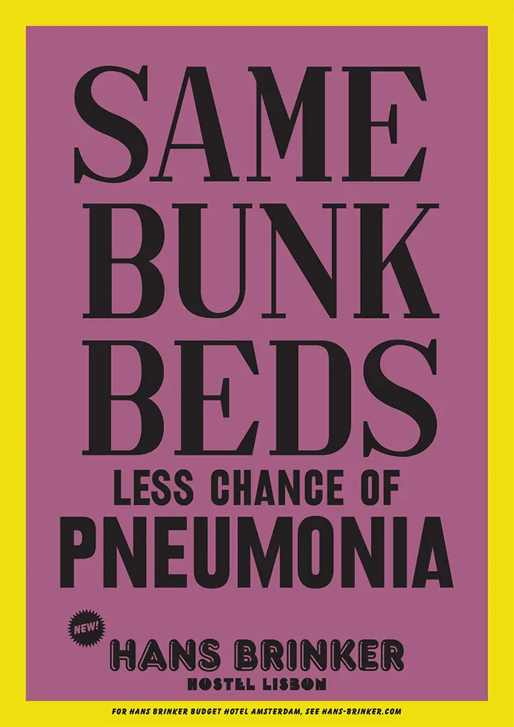 For 45 years now the modest approach from the hotel/hostel has seen enough business to open a new location in Lisbon and with it a new brand identity by communications agency KesselsKramer. The new identity features a range of different type faces and slogans such as “same bunk beds, less chance of pneumonia” along with fairly useless products to push the mediocre, below belt satisfaction you can expect when staying in either branch. The Lisbon identity plays on the fact that the hotel is completely the same, with the only different experience you can expect from the Amsterdam branch is better weather.